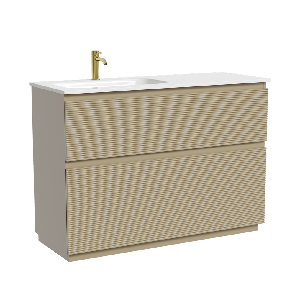 SANCOS Тумба напольная с рельефным фасадом Folk Floor левая 1190х445х850, c двумя ящиками оснащенными доводчиками скрытого монтажа с системой плавного закрывания, цвет Капучино, арт.FL120FLCP