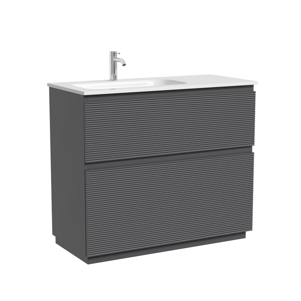 SANCOS Тумба напольная с рельефным фасадом Folk Floor левая 995х445х850, c двумя ящиками оснащенными доводчиками скрытого монтажа с системой плавного закрывания, цвет Grey soft, арт.FL100FGS