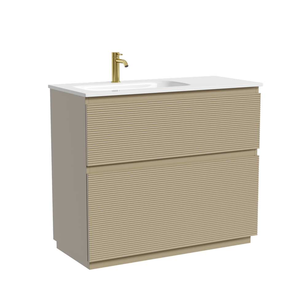 SANCOS Тумба напольная с рельефным фасадом Folk Floor левая 995х445х850, c двумя ящиками оснащенными доводчиками скрытого монтажа с системой плавного закрывания, цвет Капучино, арт.FL100FLCP