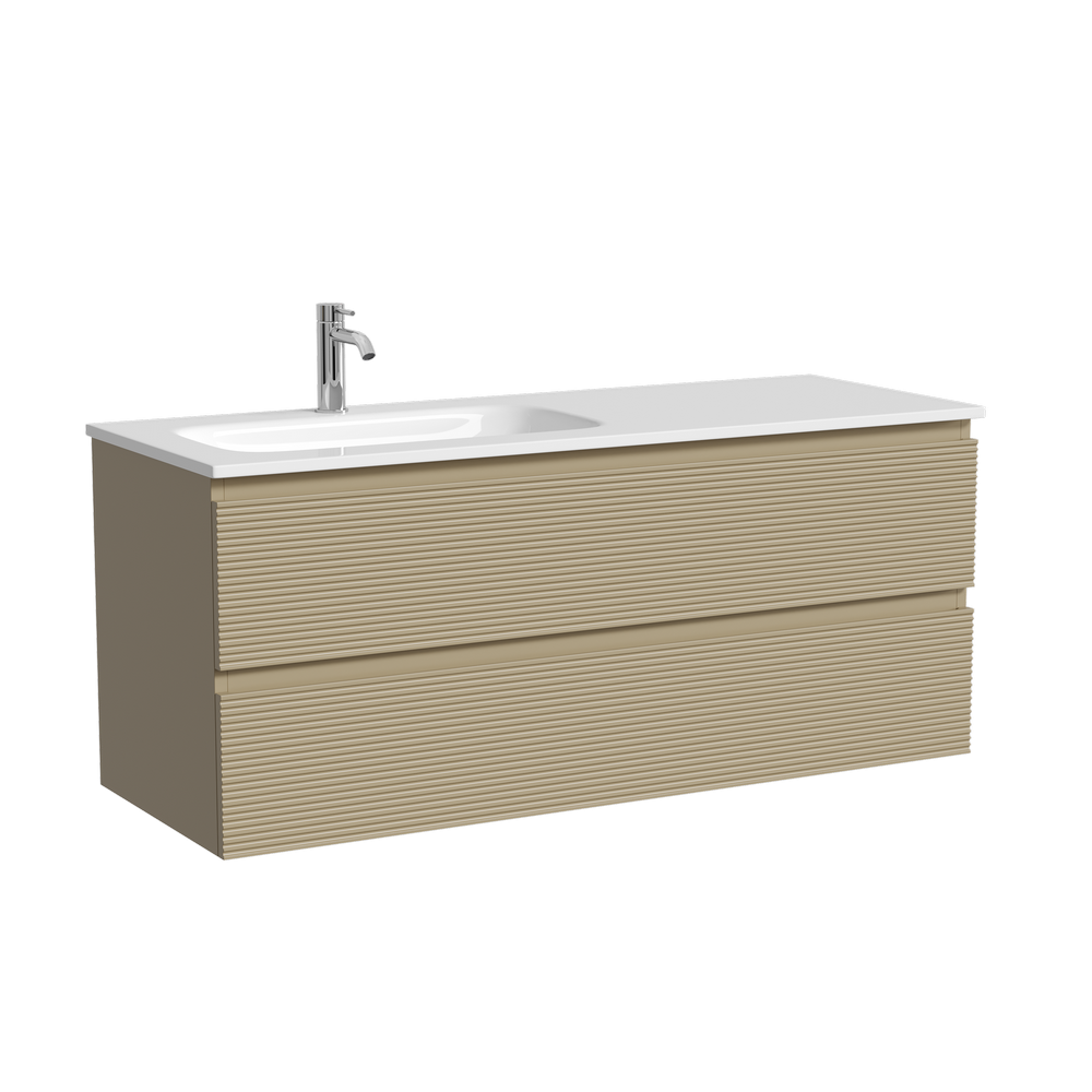 SANCOS Тумба подвесная с рельефным фасадом Folk левая 1190х445х500, c двумя ящиками оснащенными доводчиками скрытого монтажа с системой плавного закрывания, цвет Капучино, арт.FL120LCP