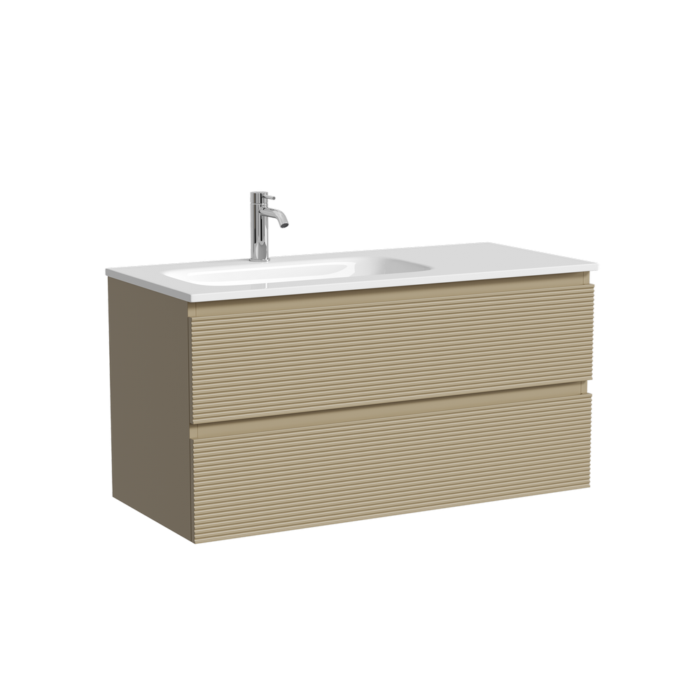 SANCOS Тумба подвесная с рельефным фасадом Folk левая 995х445х500, c двумя ящиками оснащенными доводчиками скрытого монтажа с системой плавного закрывания, цвет Капучино, арт.FL100LCP