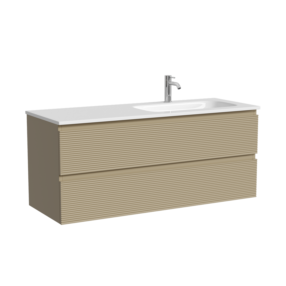 SANCOS Тумба подвесная с рельефным фасадом Folk правая 1190х445х500, c двумя ящиками оснащенными доводчиками скрытого монтажа с системой плавного закрывания, цвет Капучино, арт.FL120RCP