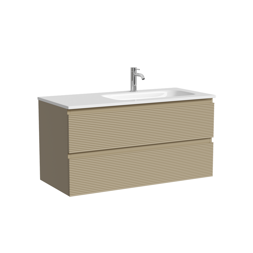 SANCOS Тумба подвесная с рельефным фасадом Folk правая 995х445х500, c двумя ящиками оснащенными доводчиками скрытого монтажа с системой плавного закрывания, цвет Капучино, арт.FL100RCP