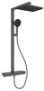 SANCOS Vos Душевая стойка с термостатическим смесителем, изливом, полкой, шлангом 1,5 м, верхним и ручным душем, цвет вороненая сталь, арт. SC6100GG