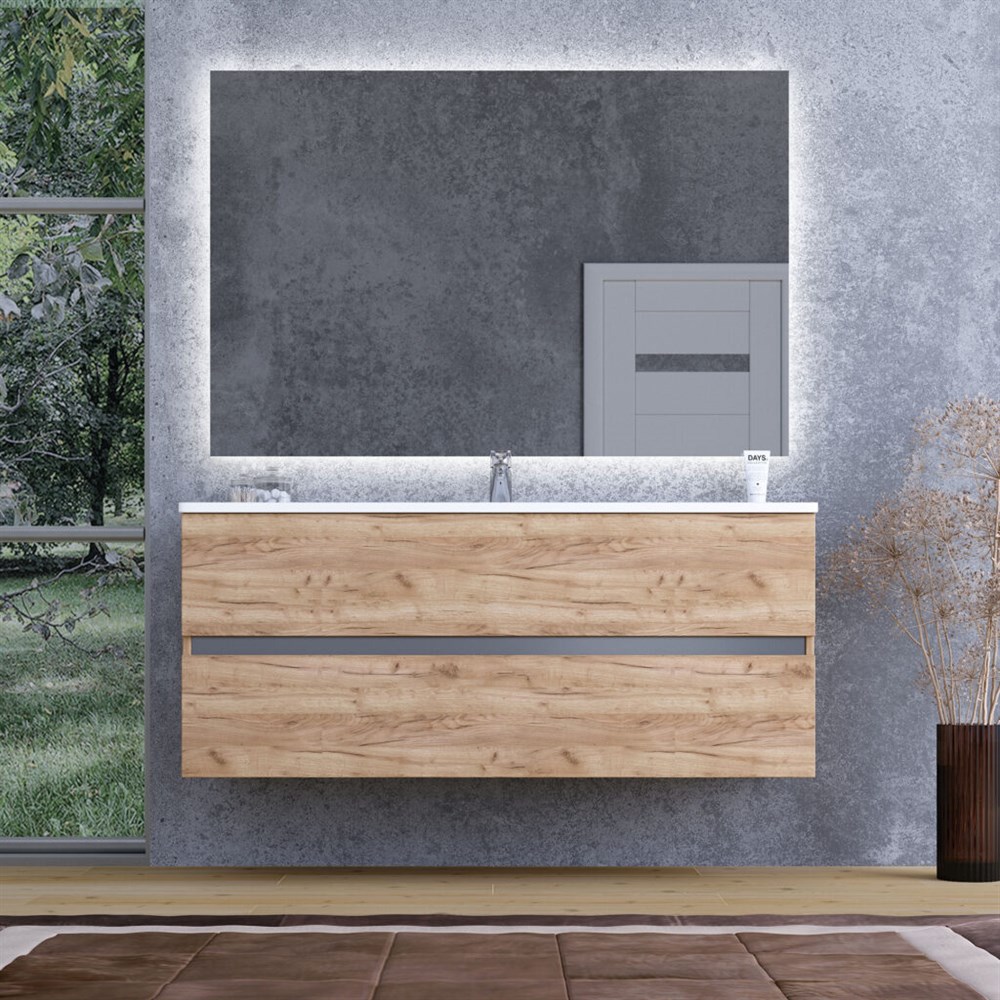 SANVIT Кубэ-2 ДУБ Тумба подвесная для ванной комнаты ширина 75 см, 2 выдвижных ящика (раковина r9075d)