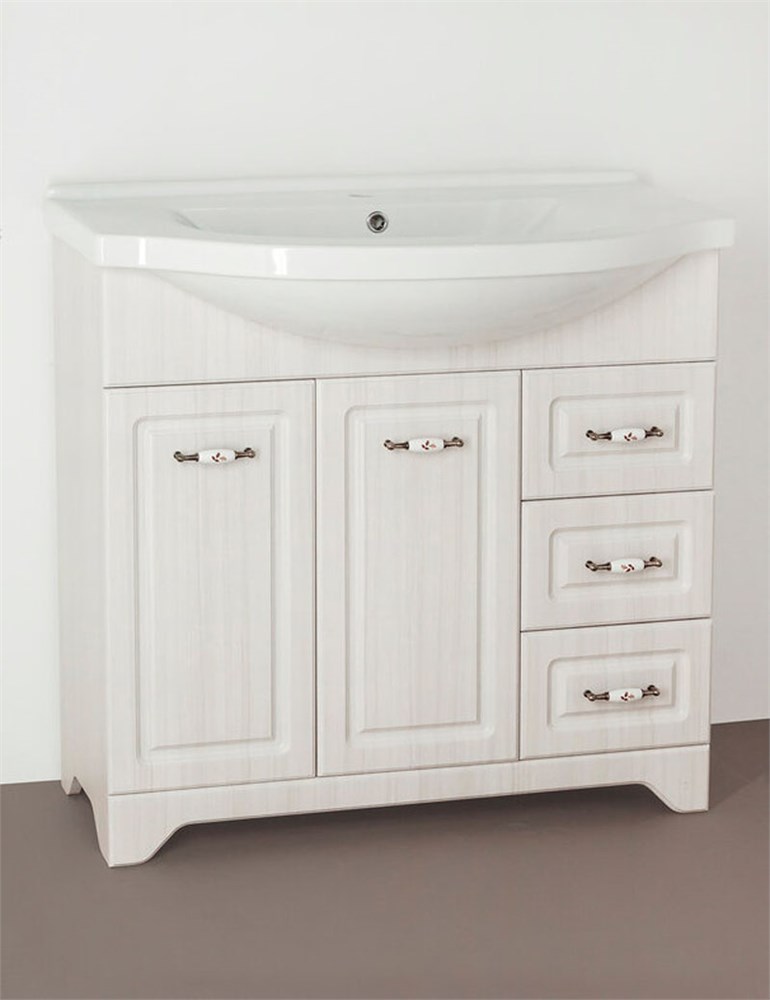 STYLE LINE Тумба с раковиной Style Line Олеандр-2 90 (3 ящ.) под умывальник Эльбрус 90, рельеф пастель
