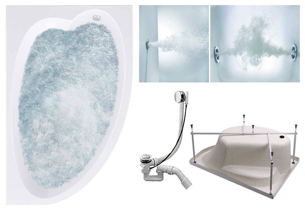 TIMO Комплект Акриловая ванна IVA1595R 150*95*70+Каркас + Слив-перелив+Гидромассаж 6 форсунок+Гидромассаж спины 3 форсунки