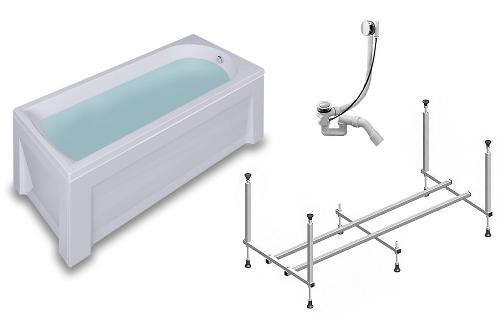 TIMO Комплект Акриловая ванна MIKA1570 150*70*58+ Каркас + Слив-перелив+Фронтальная панель+Торцевая панель