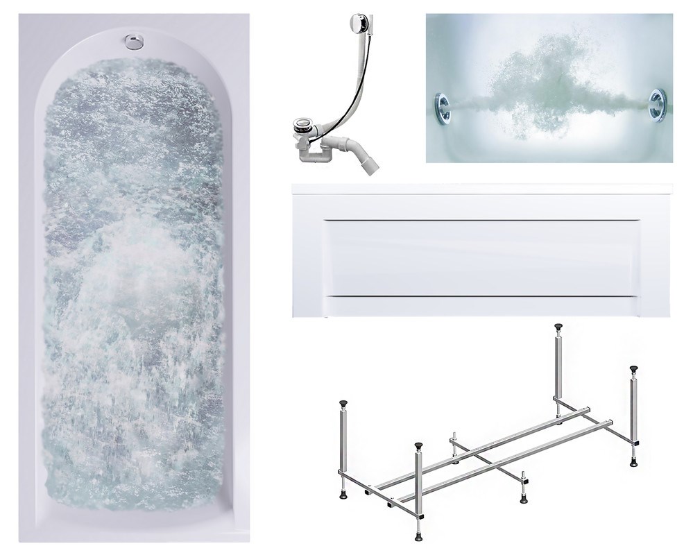 TIMO Комплект Акриловая ванна MIKA1570 150*70*58+Каркас + Слив-перелив+Гидромассаж 6 форсунок+Фронтальная панель