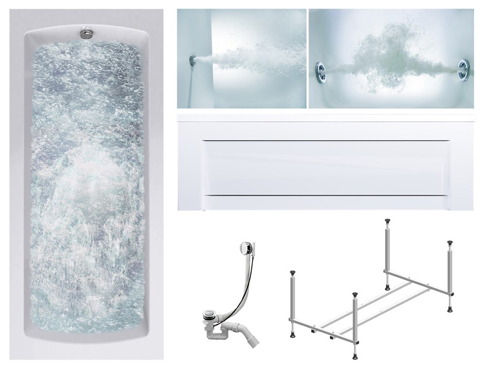 TIMO Комплект Акриловая ванна RITTA1570 150*70*63+Каркас + Слив-перелив+Гидромассаж 6 форсунок+Гидромассаж спины 3 форсунки+Фронтальная панель