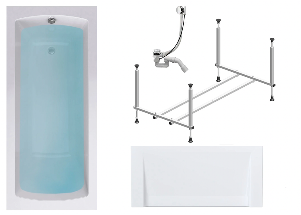 TIMO Комплект Акриловая ванна RITTA17570 1750*700*580+Каркас+Слив-перелив+Фронтальная панель