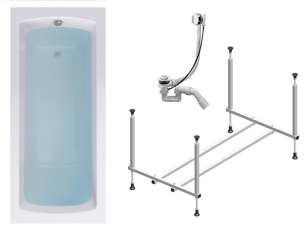 TIMO Комплект Акриловая ванна RITTA1880 180*80*63+Каркас + Слив-перелив