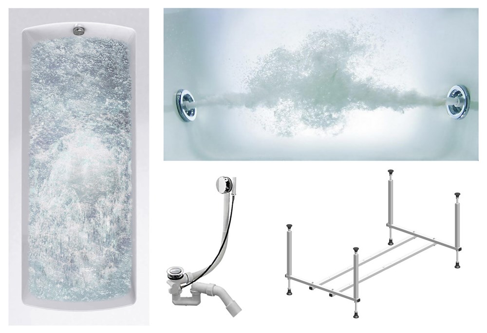 TIMO Комплект Акриловая ванна RITTA1880 180*80*63+Каркас + Слив-перелив+Гидромассаж 6 форсунок