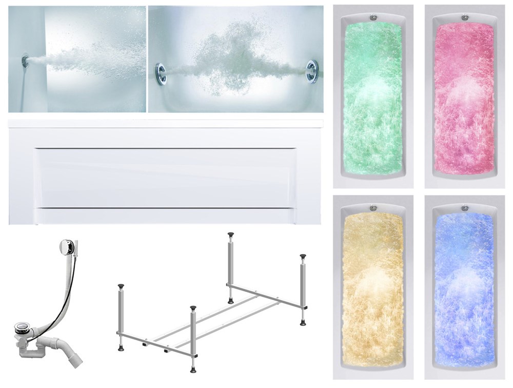 TIMO Комплект Акриловая ванна RITTA1880 180*80*63+Каркас + Слив-перелив+Гидромассаж 6 форсунок+Гидромассаж спины 3 форсунки+Хромотерапия+Фронтальная панель