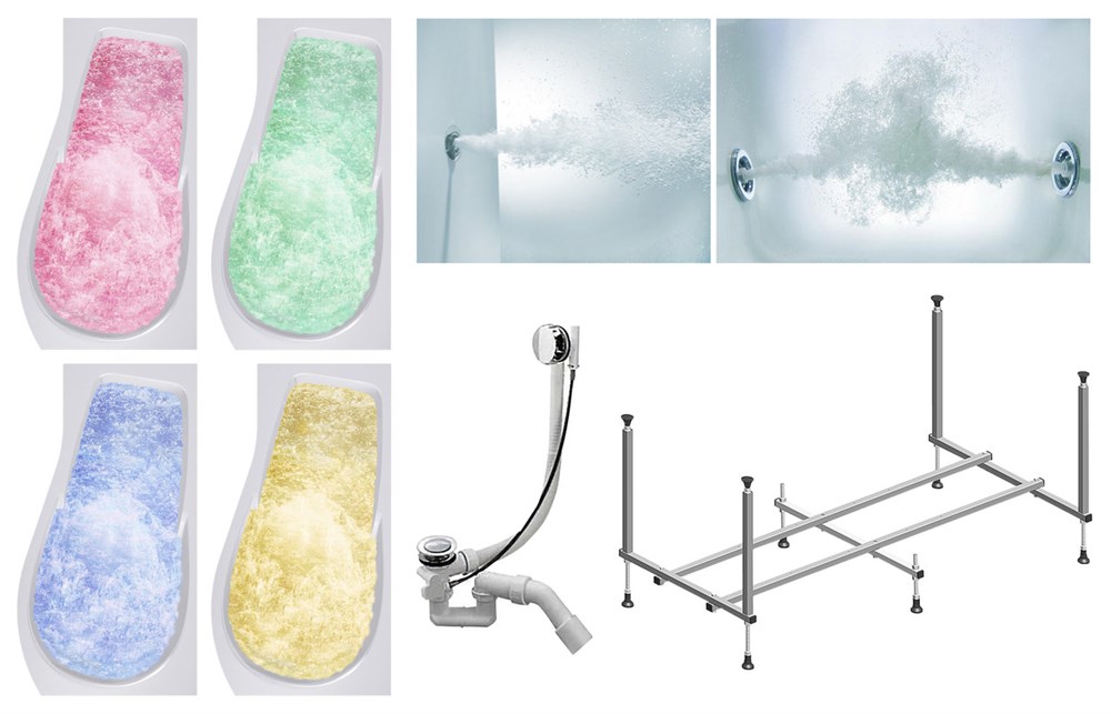 TIMO Комплект Акриловая ванна VINO1590R 150*90*66+Каркас + Слив-перелив+Гидромассаж 6 форсунок+Гидромассаж спины 3 форсунки+Хромотерапия