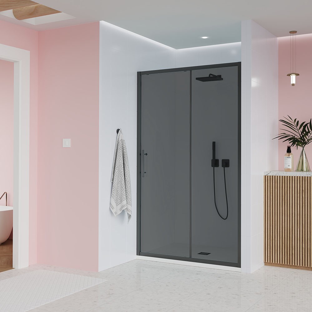 VECONI Душевая дверь Evo 100 B, 1700x1950, черный матовый, стекло тонированное матовое
