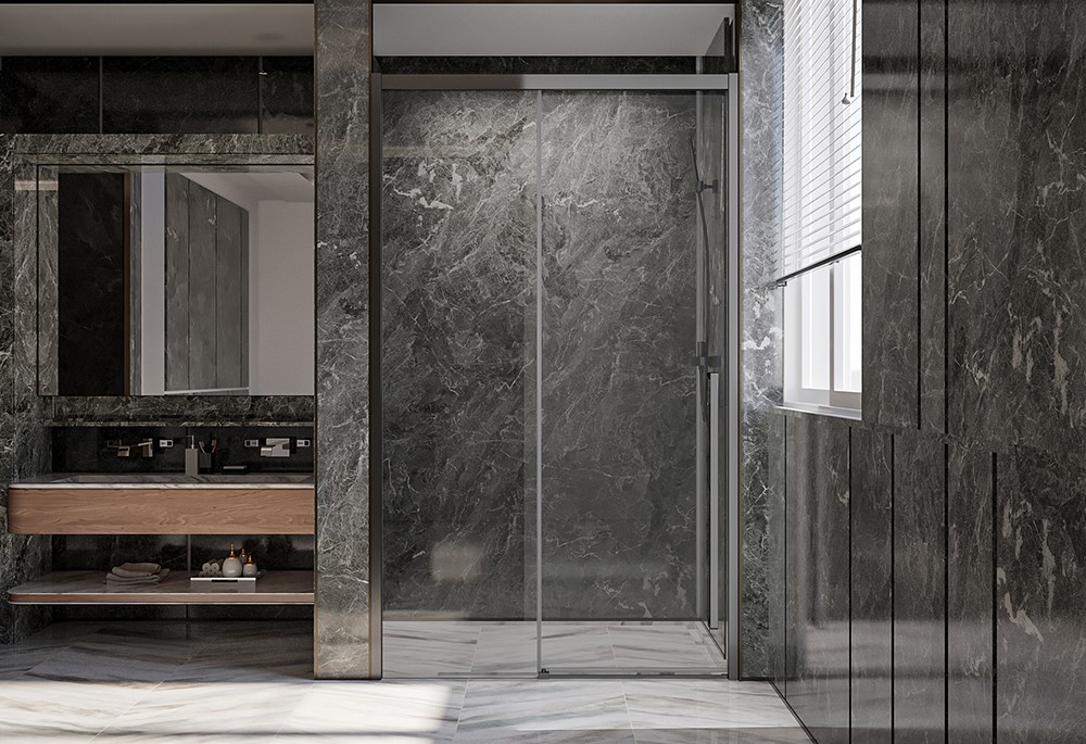 VECONI Душевая дверь Premium Trento PTD-30GR, 1400х2000, брашированный графит, стекло прозрачное
