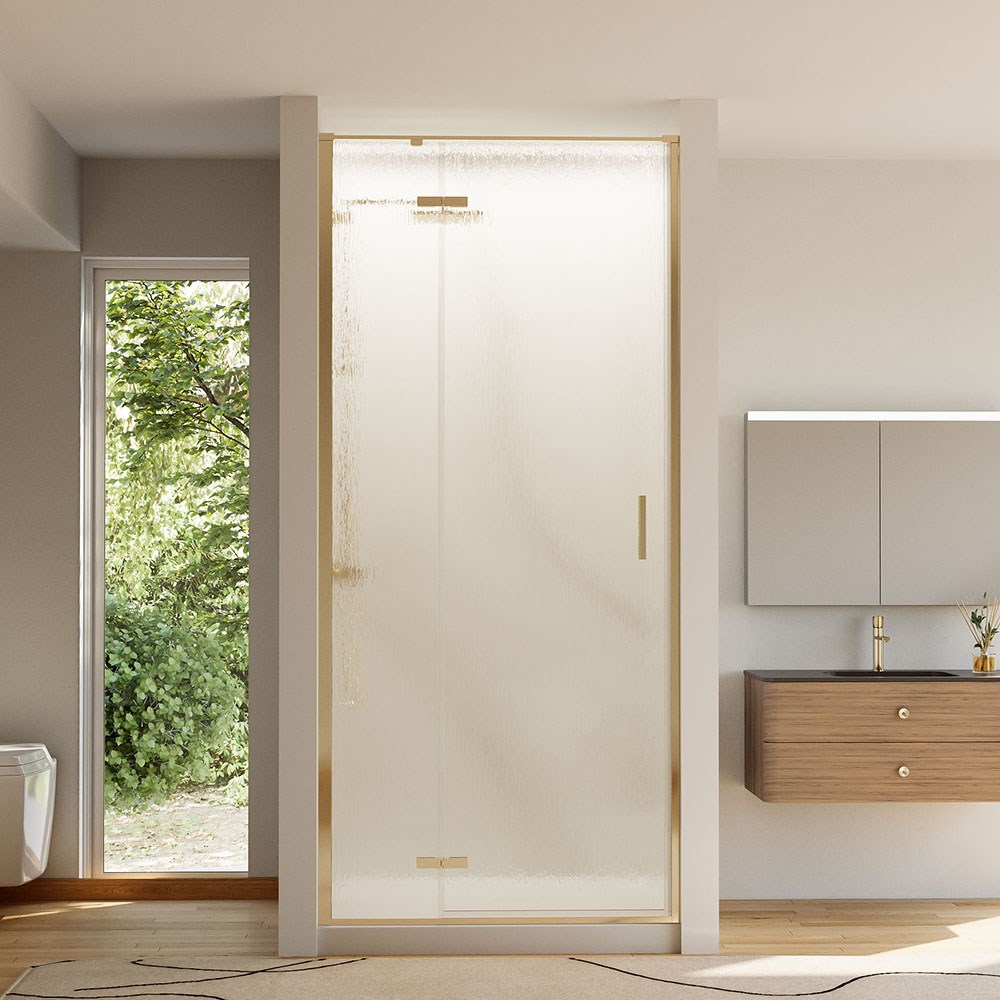 VECONI Душевая дверь распашная Vianno VN-73RG/L, 800x1950, Золото брашинг, стекло дождь
