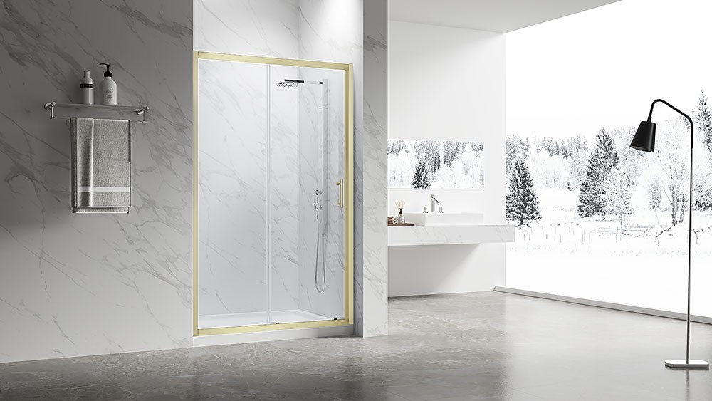 VECONI Душевая дверь раздвижная Vianno VN-55G, 1100x1950, Золото брашинг, стекло прозрачное