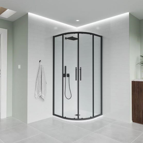 VECONI Душевой угол полукруглый, двери раздвижные Evo 200 B, 900х900x1950, черный матовый, прозрачное стекло
