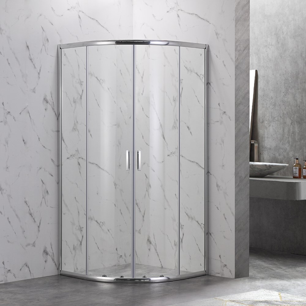 VECONI Душевой угол полукруглый, двери раздвижные Rovigo RV-202, 800x800x1900, хром, стекло прозрачное