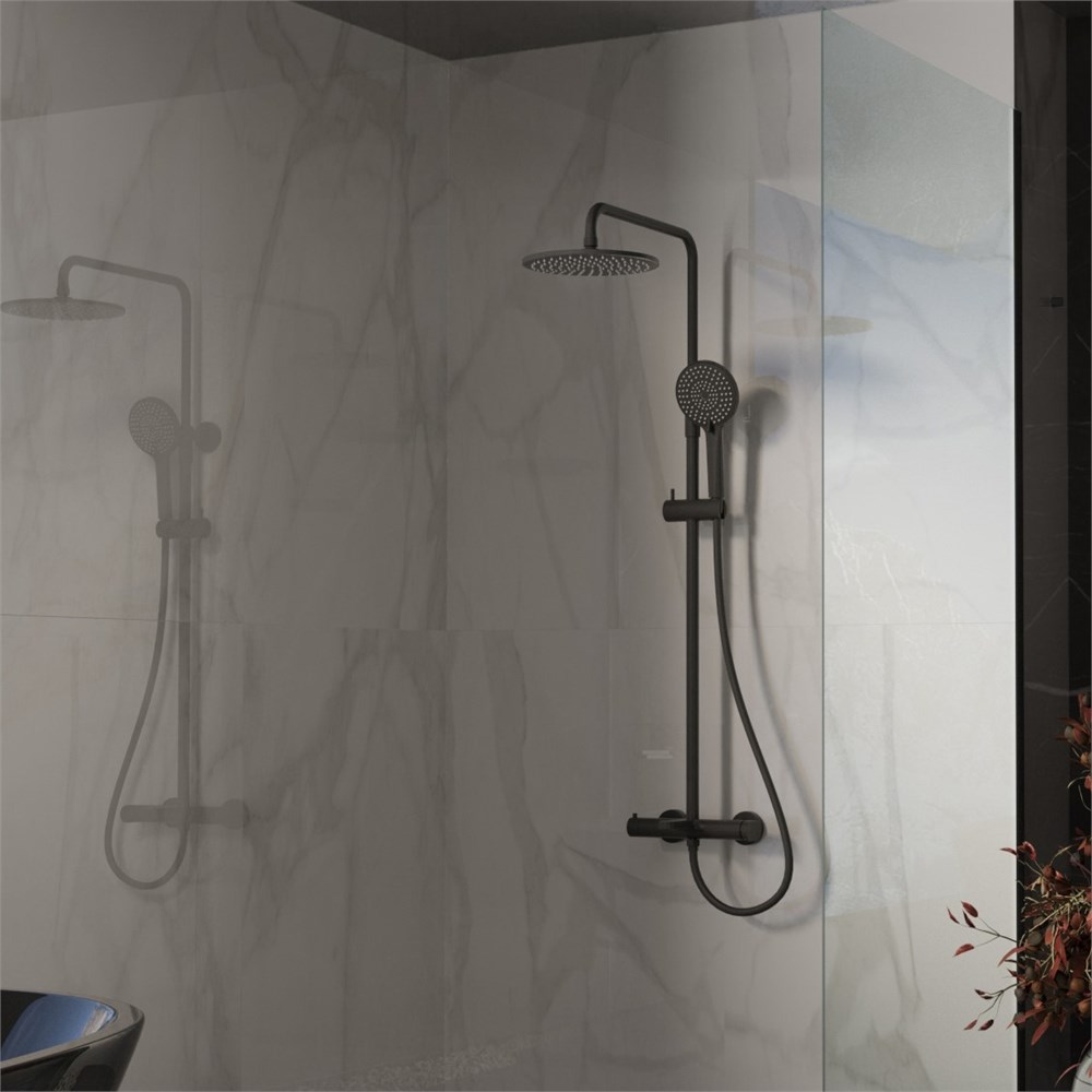VINCEA Душевая стойка Rondo VSFS-1R1MB с изливом, черный матовый