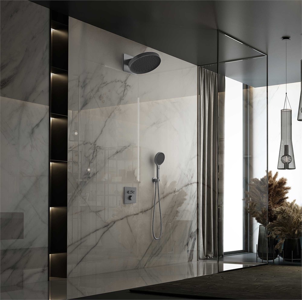 VINCEA Душевой комплект Inspire VSFW-3I21MT3GM встраиваемый, термостат, двухрежимный, вороненая сталь