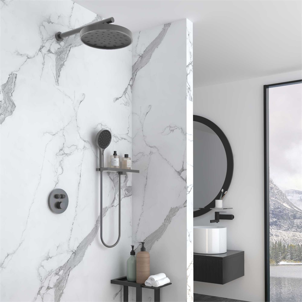 VINCEA Душевой комплект Inspire VSFW-3I22MT2RGM встраиваемый, термостат, двухрежимный, вороненая сталь