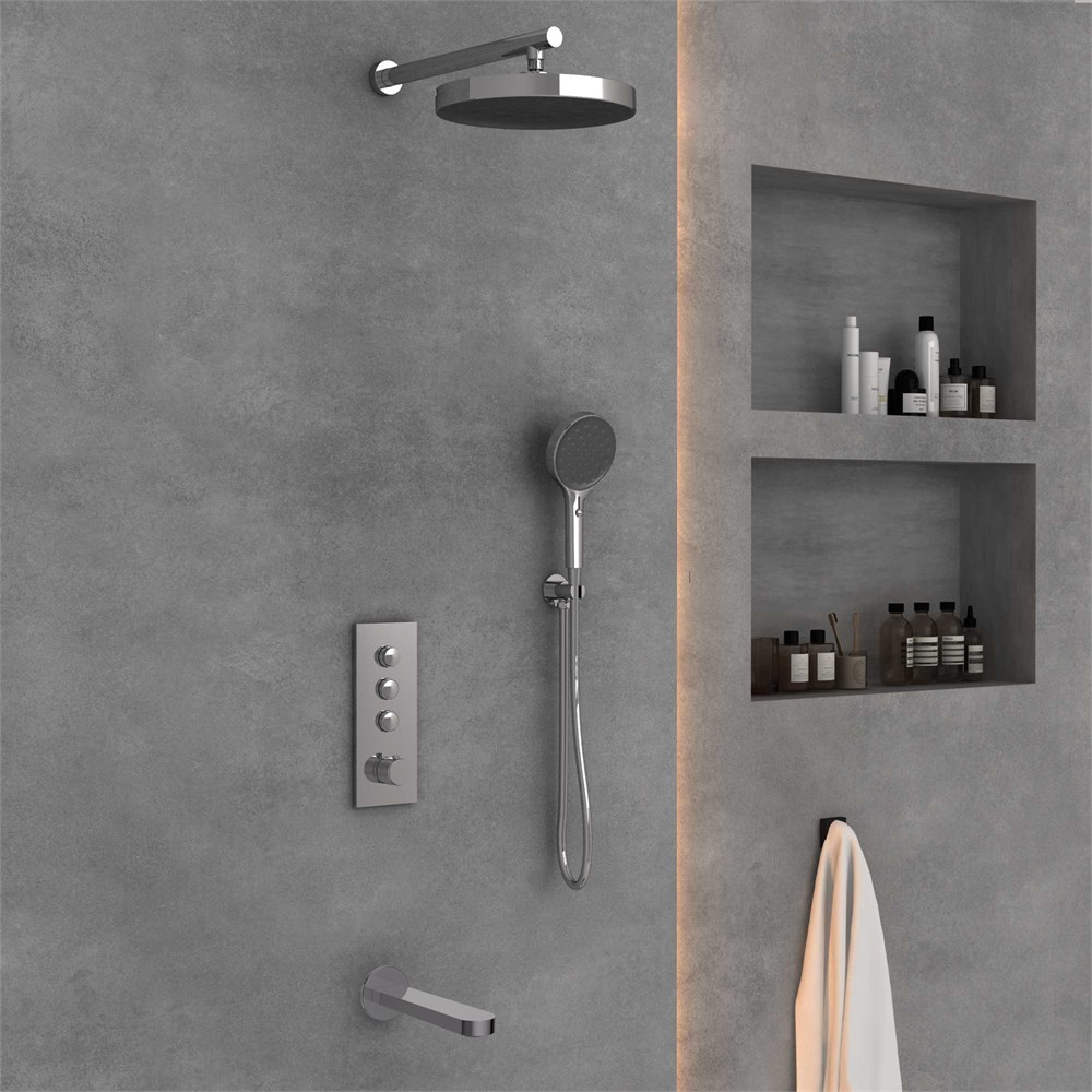 Состав комплектаВерхний душ, держатель ручного душа, ручной душ, встраиваемый смеситель,излив