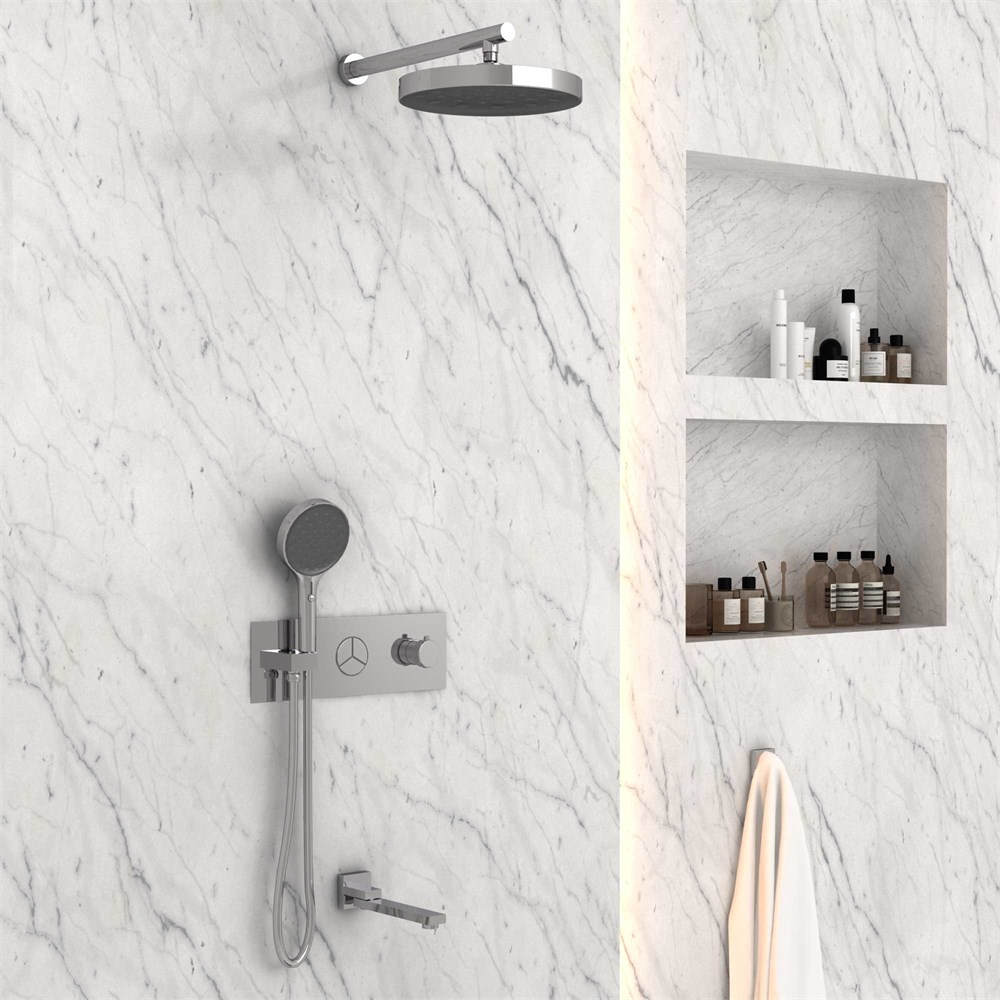 Состав комплектаВерхний душ, ручной душ, встраиваемый смеситель, излив