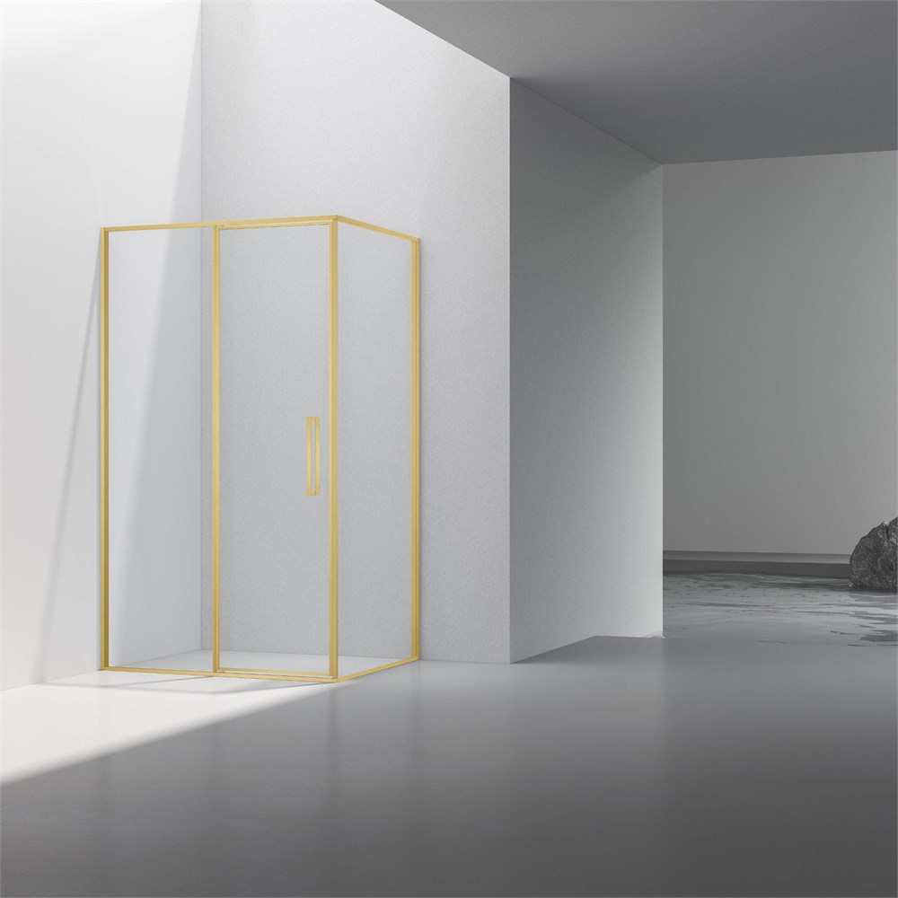 VINCEA Slim 8mm Душевой уголок прямоугольный размер 90x120 см, двери распашные, профиль - брашированное золото / стекло - прозрачное