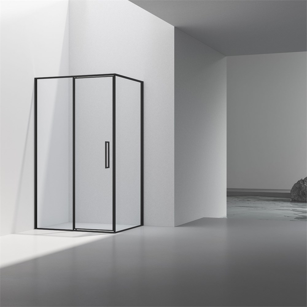 VINCEA Slim 8mm Душевой уголок прямоугольный размер 90x120 см, двери распашные, профиль - черный / стекло - прозрачное